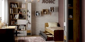 Нередко хобби ребенка перерастает в нечто большее и становится не только способом реализовать свои творческие способности, но и делом всей жизни. Уникальный выдвижной шкаф для хобби ЛОЙС 85 с двумя зонами хранения: внутренняя закрытая зона и фасадная часть с карманами. Внутри шкафа полки с ограничителями и ниша с крючками, где можно хранить форму для тренировок, мячи, ролики, наборы для творчества и другие аксессуары для хобби. Зона хранения на самом фасаде включает в себя: карман для высоких бумаг и ватманов, ручку, выполненную виде полочки, и два крючка, на которые удобно повесить заработанные медали, скакалки, элементы декора. Выдвижная система ЛОЙС 85 на роликах оснащена широкими шариковыми направляющими полного выдвижения. С ЛОЙС 85 в комнате появится место для хранения вещей тесно связанных с увлечениями детей. Модуль обязательно крепить к стене!