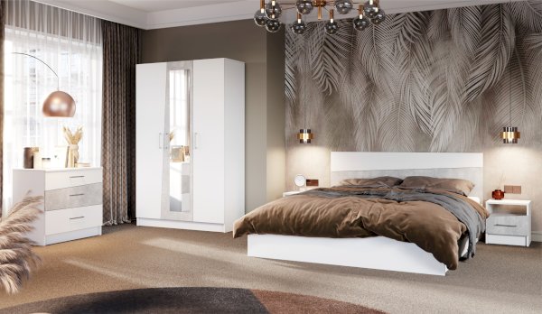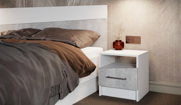 Прикроватные тумбы из ЛДСП с асимметричными скошенными линиями фасадов вносят свободу и движение в жилое пространство, делают интерьер более сложным и необычным. Нейтральные цвета декора универсальны для любого стиля интерьера. Прикроватные тумбы с ящиком на роликовых направляющих поместят в себя все вещи, которые важно иметь под рукой - телефон, любимая книга, стакан воды.