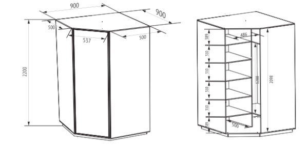 • Размер:(ШхГхВ) 900х900х2400