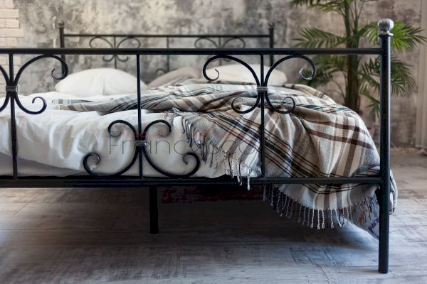 Кованая кровать Симона - это невероятное сочетание эффектного внешнего вида, потрясающих воображение результатов ручной ковки, стильного оформления в темных и светлых цветах и качественных, долговечных материалов исполнения.