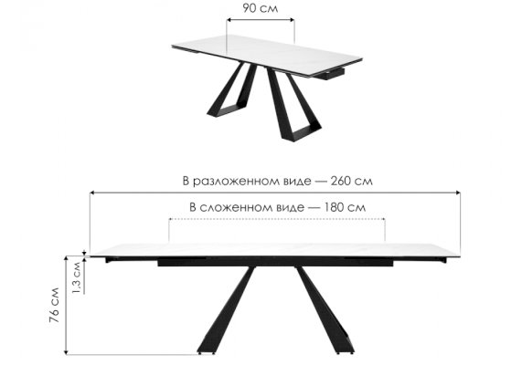 Длина разложенного столика, мм 2600