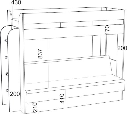 Размер верхнего спального места: 80х190 см