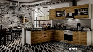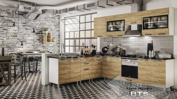 Фактурный древесный декор фасадов кухни "Крафт" отсылает к природной естественности и грации, а черные элементы создают яркие акценты, привлекающие к себе внимание. Четкие геометрические линии, массивные ручки под металл и фасады под дерево помогают отступить от стандартных шаблонов оформления кухонного пространства, обустроив у Вас дома воплощение изящества и элегантности!